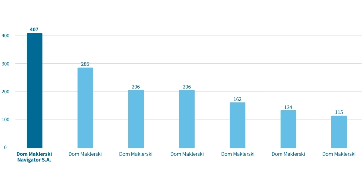 DM Navigator jest zdecydowanym liderem funkcji agenta emisji dla obligacji korporacyjnych – rejestrujemy w KDPW najwięcej obligacji korporacyjnych z wszystkich domów maklerskich.